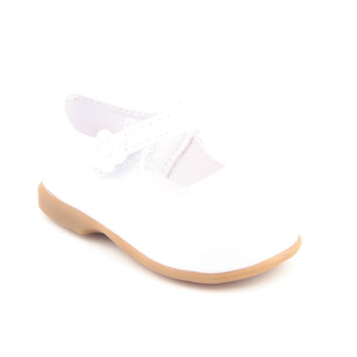 Slippers fit for a princess, these shiny, patent-leather shoes feature a velcro strap closure with flower detail along the strap. Hard sole. Imported. Read more...